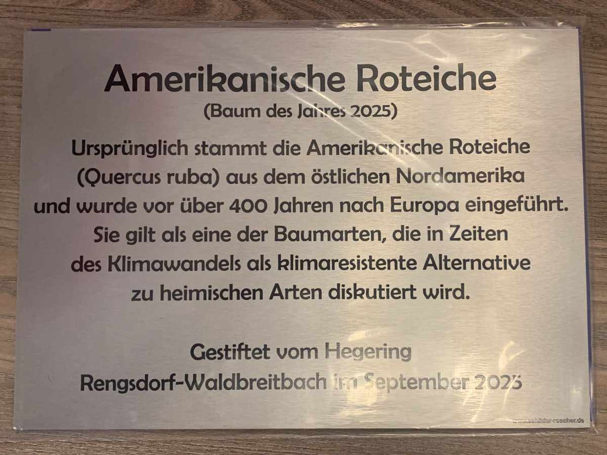 Am Nachmittag des 26.09.25 pflanzte der Vorstand des Hegering Rengsdorf/Waldbreitbach wieder den Baum des Jahres – im Jahr 2025 die Amerikanische Roteiche (Quercus rubra).