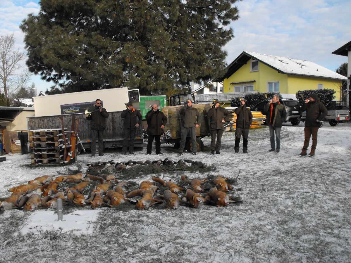 Wenngleich die Beteiligung an unserem gemeinsamen Frühstück am 16.02. als Ausklang der Fuchsansitzwoche etwas höher hätte sein können, so war die Strecke abermals beachtlich. Neben drei Stück Schwarzwild konnte die beachtliche Anzahl von 28 Füchsen, 12 Mardern und 8 Waschbären erlegt werden.