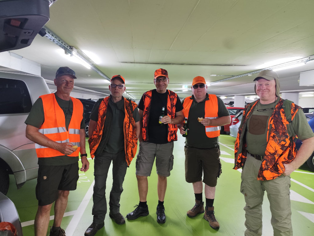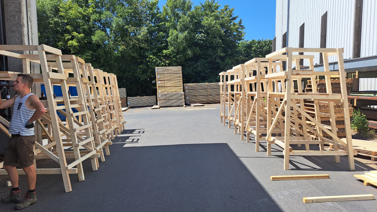 Nach kurzer Stärkung zur Mittagszeit war bis gegen 14.30 Uhr der überwiegende Anteil der bereits im Vorfeld verkauften 20 Drückjagdböcke fertiggestellt. Die restlichen Exemplare konnten sodann in einer „Sonderschicht“ am 23.06.25 ab 17 Uhr montiert werden, welche wie am Samstag zuvor von den neuen Eigentümern - sei es mit Pkw-Anhängern oder gar Lkws - abtransportiert wurden.