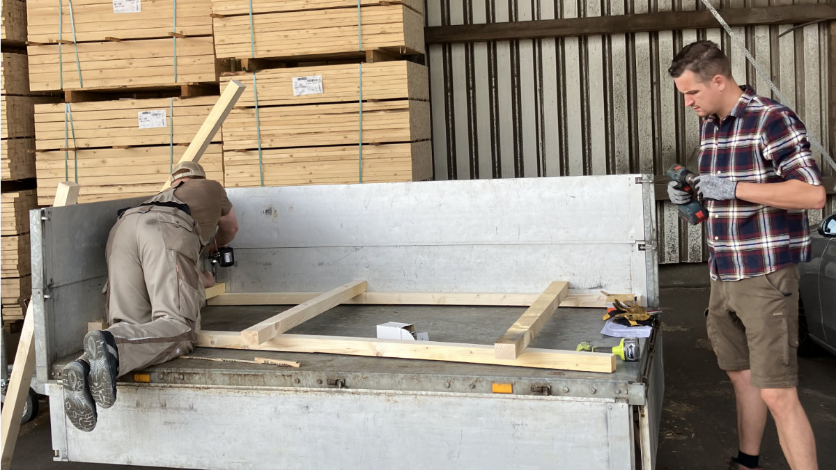 Mitzubringen sind demnach ein „kleiner Handwerkskasten“, Hammer, Arbeitshandschuhe, Akkuschrauber (mit entsprechender Bit-Auswahl), Holzbohrer als natürlich auch ein Pkw-Anhänger (nebst Spanngurten) oder entsprechendes Fahrzeug für den Abtransport der fertiggestellten Drückjagdböcke.