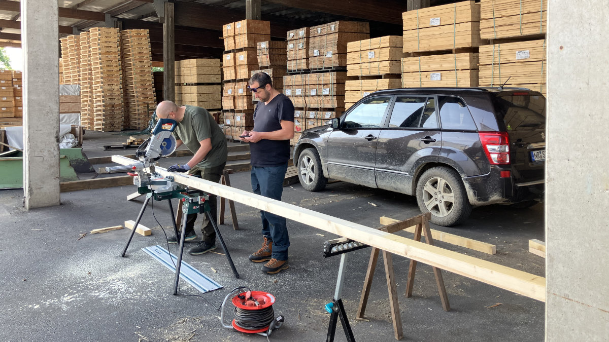 Nach kurzem Studium des Bauplans und dem Zusägen der ersten Balken und Bretter in unterschiedlichsten Längen und Stärken konnte der erste Muster-Bock zusammengezimmert werden, s.d. anschließend eine fast schon fließbandartige Serienproduktion anlief.