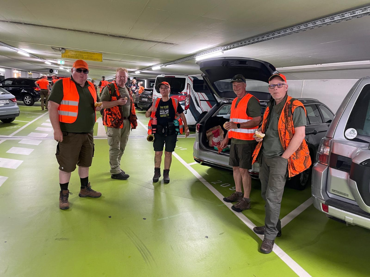 Nach kurzer Stärkung zur Mittagszeit war bis gegen 14.30 Uhr der überwiegende Anteil der bereits im Vorfeld verkauften 20 Drückjagdböcke fertiggestellt. Die restlichen Exemplare konnten sodann in einer „Sonderschicht“ am 23.06.25 ab 17 Uhr montiert werden, welche wie am Samstag zuvor von den neuen Eigentümern - sei es mit Pkw-Anhängern oder gar Lkws - abtransportiert wurden.