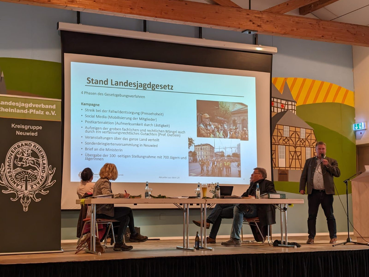 Als Gastredner war vom LJV der Geschäftsführer Herr Dr. Sven Bischoff eingeladen. Er informierte über die Evaluierung und den Regierungsentwurf des neuen Landesjagdgesetzes und die darauf folgende Kampagne des LJV. Außerdem informierte er die Anwesenden über den neuesten Stand und die Zusammenarbeit des LJV mit dem zuständigen Ministerium. Weitere Themen waren die personelle und fachliche Umstrukturierung der Geschäftsstelle und der geplante Umbau und Erweiterung der Geschäftsstelle.